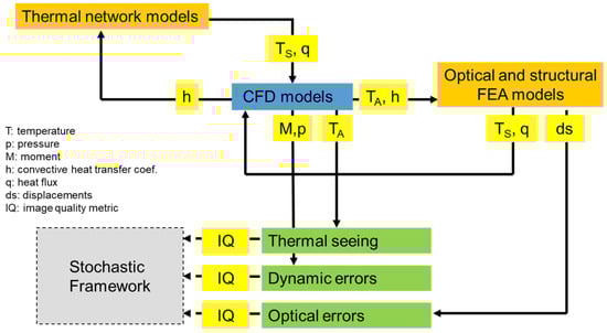 The aerothermal modeling suite can provide a wide range of outputs to validate and/or verify subsystem design requirements. The thermal CFD simulations yield force/moment and temperature fields used, respectively, by the dynamic and thermal seeing blocks, while the thermal FEA simulations yield displacements used directly by the optical block. Thus, it can produce estimates of subsystem aerothermal-related error budget terms and system-level performance budgets.