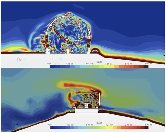 - Sebag, J.; Vogiatzis, K.; Barr, J.; Neill, D. LSST Summit Enclosure: Facility Design Optimization Using Aero-Thermal Modeling; SPIE 8449(3); SPIE: Bellingham, WA, USA, 2012. [Google Scholar]