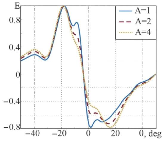 The experiment validated the modeling results. Applying algorithm (22) in a four-antenna direction finder enables the achievement of a broad sector for unambiguous angle measurements and enhances the slope of the discriminative characteristic, provided that measurements from wide-beam antennas are adjusted with an additional proportionality factor greater than one. However, practical implementation of multiple antennas can be complicated by potential asymmetry and elevated side lobes in antenna patterns. For instance, Figure 15 shows an additional extremum in the discriminative characteristic at an angle of 7°, which is not present at the symmetric angle relative to the equal-signal zone (−13°). Addressing such issues in practice requires meticulous calibration of the direction-finding system, use of highly stable platforms, and precise positioning of the equipment.