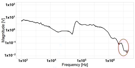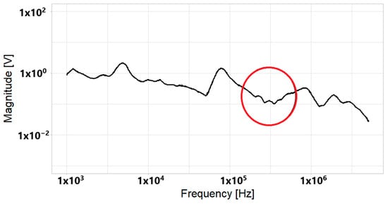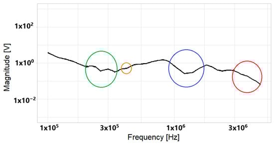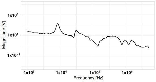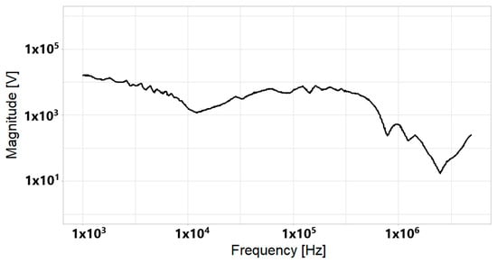 Finally, the magnitude of the electrical signal in the frequency domain (spectrum) is obtained using Equation (6).