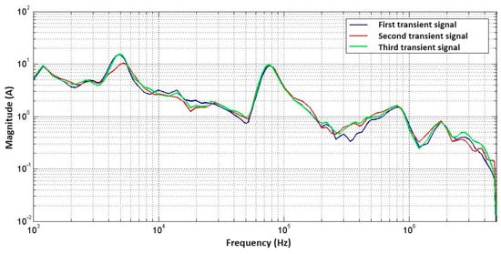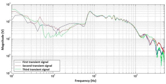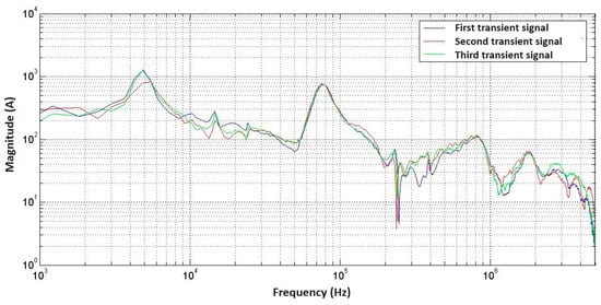 Spectrum of the three transient voltage signals obtained with DFT.