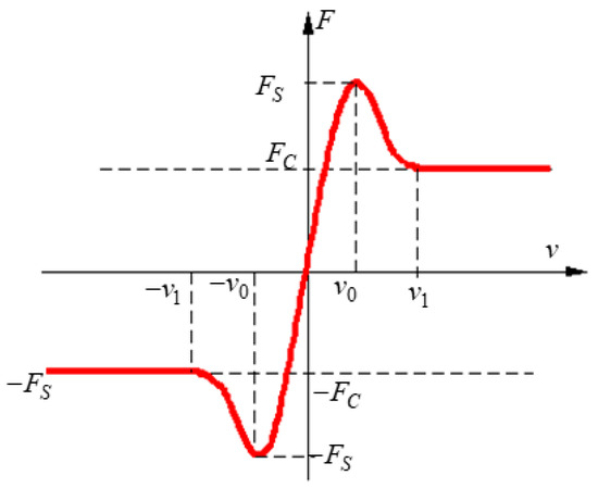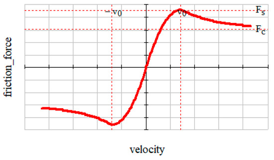 These mathematical difficulties increase based on the fact that the transition from static to dynamic friction is not sudden, as shown in Figure 3, but it happens in a finite time interval; this is known as the Stribeck effect [20,21].