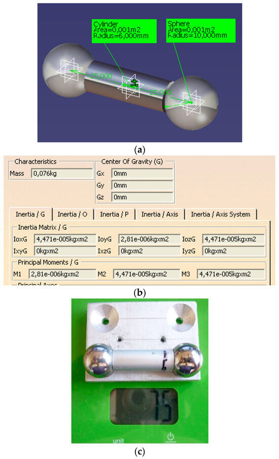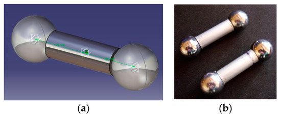 To materialise the ring, the idea of an outer ball bearing ring [40] was employed. The uncontrolled rotations of the body must be avoided; thus, starting from the solution of two rigidly attached balls, we built the mobile body by firmly connecting two identical ball bearings by an aluminium rod. The co-axiality between the rod axis and the centre line was ensured by making two conical holes at the ends of the rod that are co-axial to the rod axis; this ensures the self-laying of the balls with their centres on the axis of the rod, Figure 14.