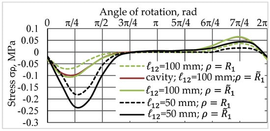 - If instead of a pipe there is a cavity with radius R1, it does not affect the stress but significantly affects other stresses. Thus, the stresses , in the presence of a pipe, increase by almost 50%, and the stresses decrease by five times.