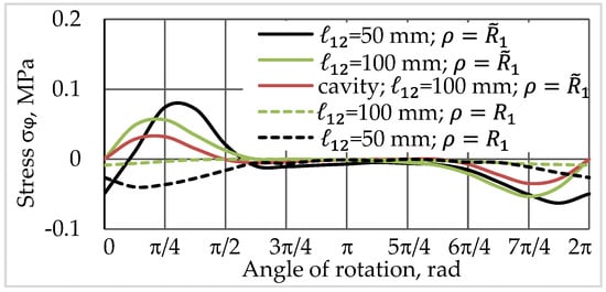 The maximum negative values of = –0.18265 MPa occur at φ = 0, and the maximum positive values of = 0.15611 MPa occur at φ = π/3.