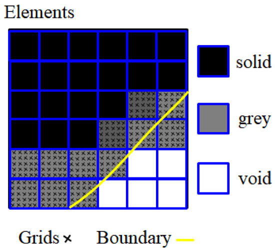 The symbol denotes the filtered variable for the nodes. Consequently, it is possible to interpolate and project the projected variables at the grid points based on the nodal value. The smooth boundary can therefore be implicitly represented by the level-set function :