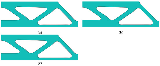 To validate the non-penalization version of the SEMDOT method, the aforementioned problem with three different discretizations with 241 × 81, 361 × 121, and 481 × 161 evenly distributed nodes is investigated. Figure 8 shows the optimized topologies where all discretizations converge to similar designs. These occurrences demonstrated conclusively that the discretization’s independence may be accomplished using the suggested SEMDOT approach.