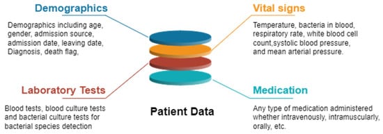The application of machine learning in sepsis study and prediction involves the use of algorithms to analyze large and complex datasets, identify patterns, and make predictions about future outcomes. After the first attempts to perform medical decision-making with expert systems [,], machine learning models have been increasingly utilized in healthcare research for their ability to efficiently analyze vast quantities of data and their potential for predictive accuracy [,]. One of the primary uses of machine learning in sepsis study is for mortality prediction. Machine learning models can be trained to recognize patterns in patient data that indicate a higher risk of mortality due to sepsis. Various types of machine learning models have been employed for this purpose, including logistic regression, support vector machines, and deep learning models such as convolutional neural networks and recurrent neural networks. These models can utilize a range of patient data, including demographic information, comorbidities, vital signs, and laboratory test results, to make their predictions. Machine learning models for mortality prediction can serve several important functions in the management of sepsis. Firstly, they can assist in the early identification of patients at high risk of mortality, allowing for timely intervention and potentially improving patient outcomes. Secondly, they can provide valuable information for decision-making in clinical practice, such as guiding the allocation of resources and the selection of treatment strategies []. In addition to mortality prediction, machine learning models have also been used to predict length of stay for patients with sepsis. Length of stay is an important outcome measure in healthcare, as it is associated with the severity of illness, the effectiveness of treatment, and healthcare costs. Machine learning models can analyze patterns in patient data to predict length of stay, helping to optimize resource allocation and care planning []. Despite the potential of machine learning models for sepsis study and prediction, there are several challenges and limitations that need to be addressed. The performance of these models can be affected by the quality and completeness of the data, the selection of relevant features, the choice of the machine learning algorithm, and the model’s ability to generalize to different patient populations. Furthermore, the interpretability of machine learning models is often limited, which can make it difficult for clinicians to understand and trust the model’s predictions [].