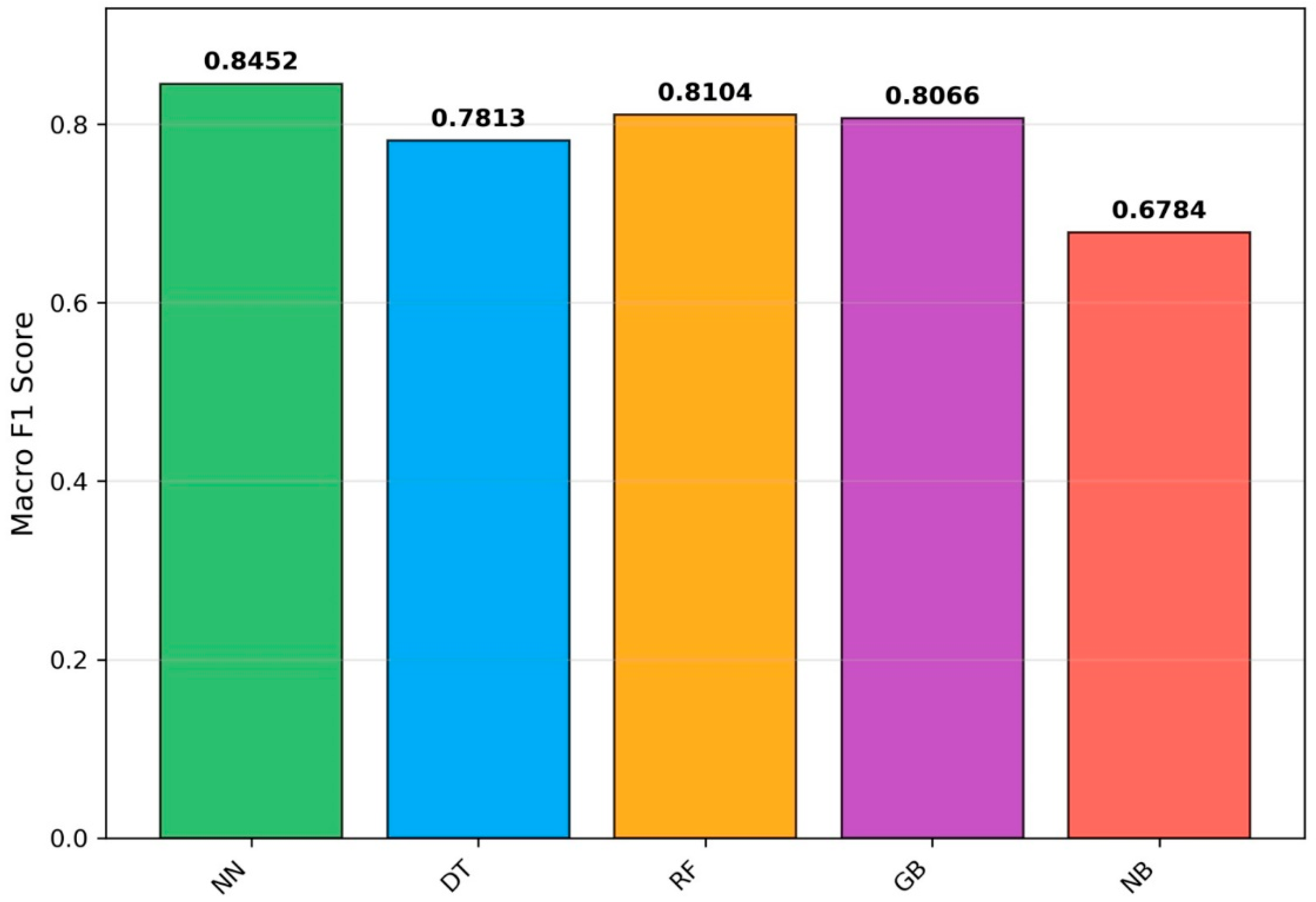 Algorithms | Accuracy | F1 Score | Macro F1 Score |