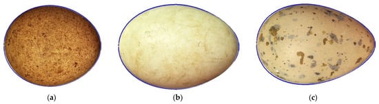 - Biggins, J.D.; Thompson, J.E.; Birkhead, T.R. Accurately quantifying the shape of birds’ eggs. Ecol. Evol. 2018, 8, 9728–9738. [Google Scholar] [CrossRef]