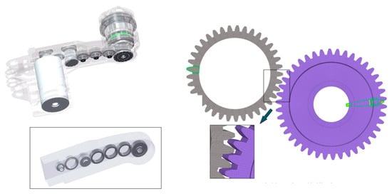 Table 1 summarizes the basic parameters of the rocker arm transmission gears. In the table, “Gear NO.” corresponds to the gear identifier (Z1–Z9), “Shaft” indicates the associated transmission shaft number or stage (e.g., I, II, III), and “Module” and “Teeth” represent the gear module and the number of teeth, respectively. For a detailed reference, please refer to the corresponding labels in Figure 1.