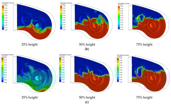 Z6 gear oil distribution. (a) 700 r/min; (b) 800 r/min; (c) 900 r/min.