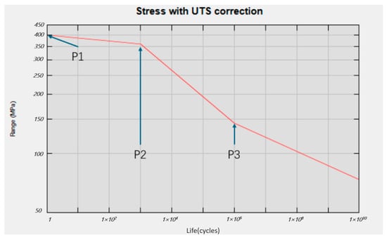 As shown in Figure 5, the material’s S-N curve is crucial for evaluating component fatigue performance. In ANSYS nCode, the S-N curve can be fitted based on the material type and tensile strength values, which can also meet the requirements of fatigue analysis. The figure below shows a typical S-N curve generated in nCode, which adopts a multi-segment linear fitting method.