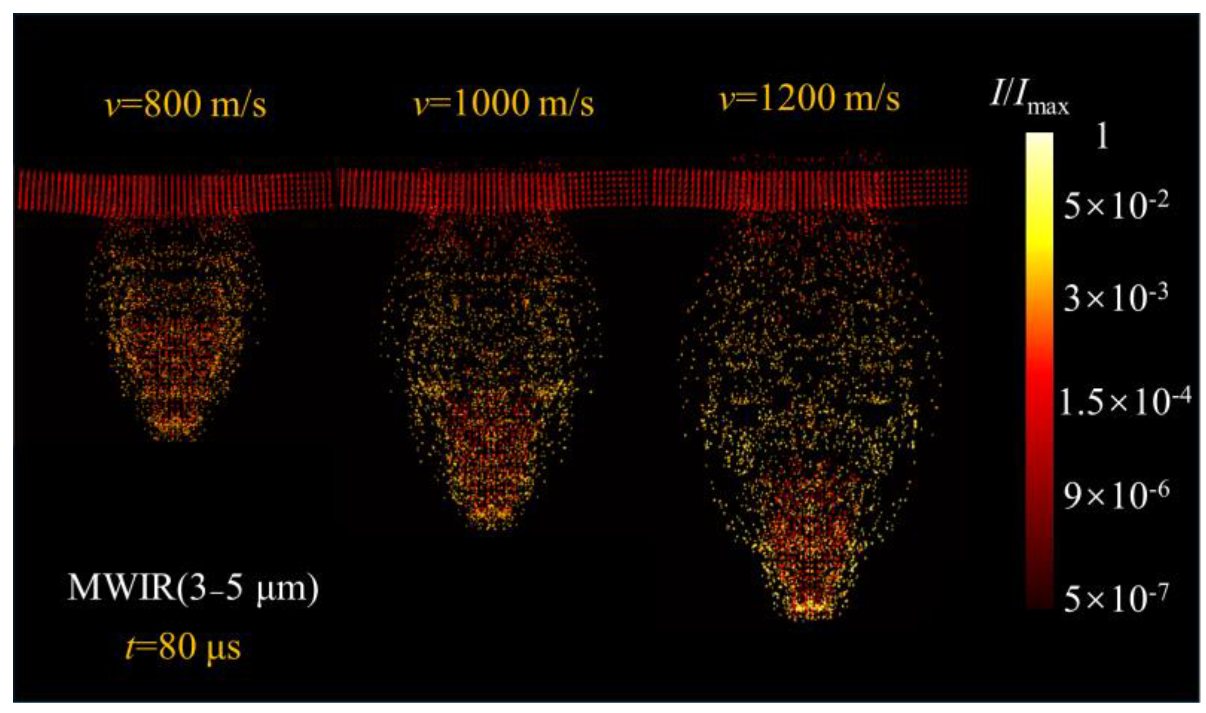 4.2. Effect of Target Impact Speed on Infrared Radiation