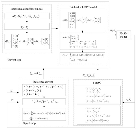 In this context, the proposed control strategy can be interpreted as an integrated-architecture (IA)-based control scheme, in which the finite-time extended state observer (FTESO) and the model predictive controller (MPC) are designed within a unified framework rather than as separated modules. This integrated architecture allows the observer and controller to interact in real time: the FTESO rapidly estimates lumped disturbances and feeds them directly into the MPC optimization process, while the MPC updates its cost function and prediction model based on these estimations. Such mutual coupling forms a closed-loop coordination between disturbance observation and predictive compensation, significantly improving dynamic adaptability and robustness. By combining the fast finite-time convergence of the observer with the optimal decision-making of predictive control, the IA-based FTESO–MPC scheme achieves superior disturbance rejection, faster transient response, and smoother control action compared with conventional cascaded approaches. This integration highlights the key innovation of the present work and provides a more systematic foundation for robust and adaptive PMSM control.