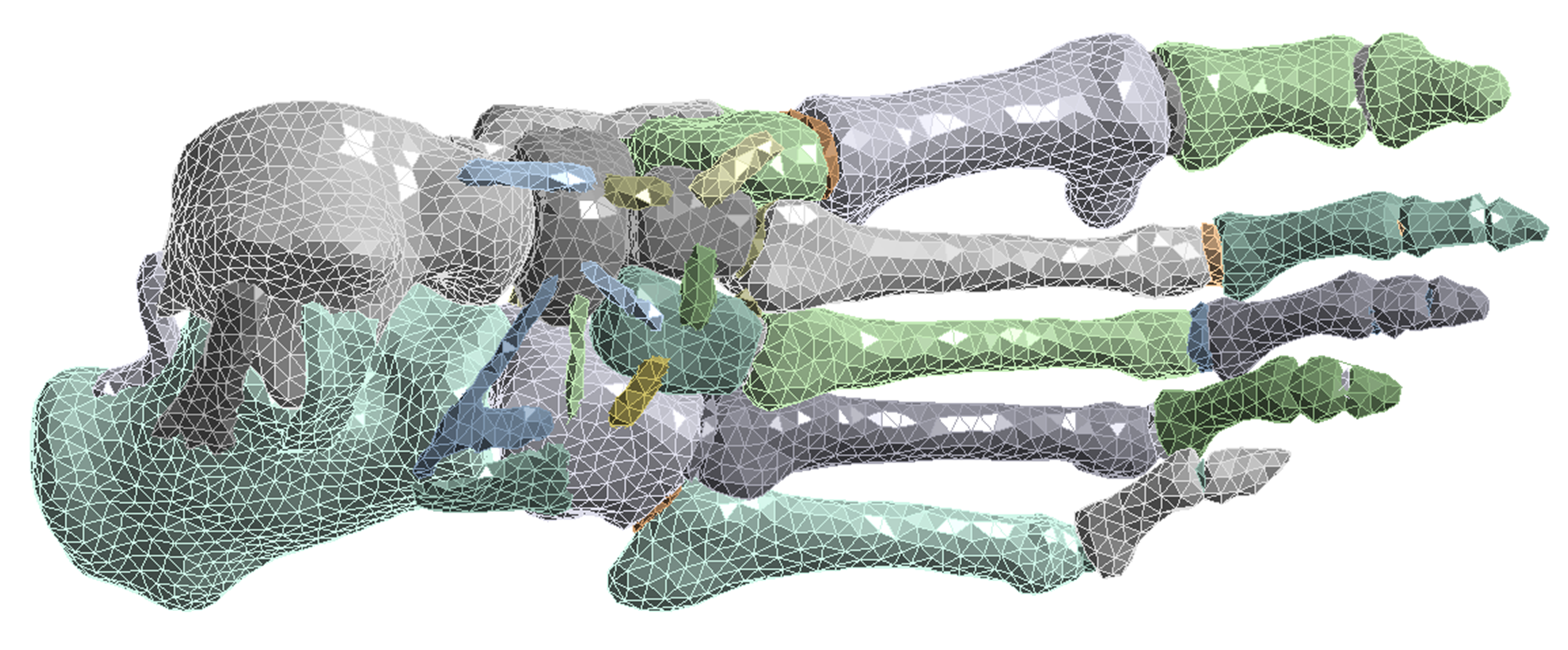 4]. However, to better understand the internal impact of these forces on the bone structures and ligaments of the foot, computational models that faithfully represent their anatomy and allow for numerical simulations are necessary. The use of three-dimensional modelling and simulation tools, utilising the Finite Element Method (FEM), has grown exponentially in the study of biological structures [