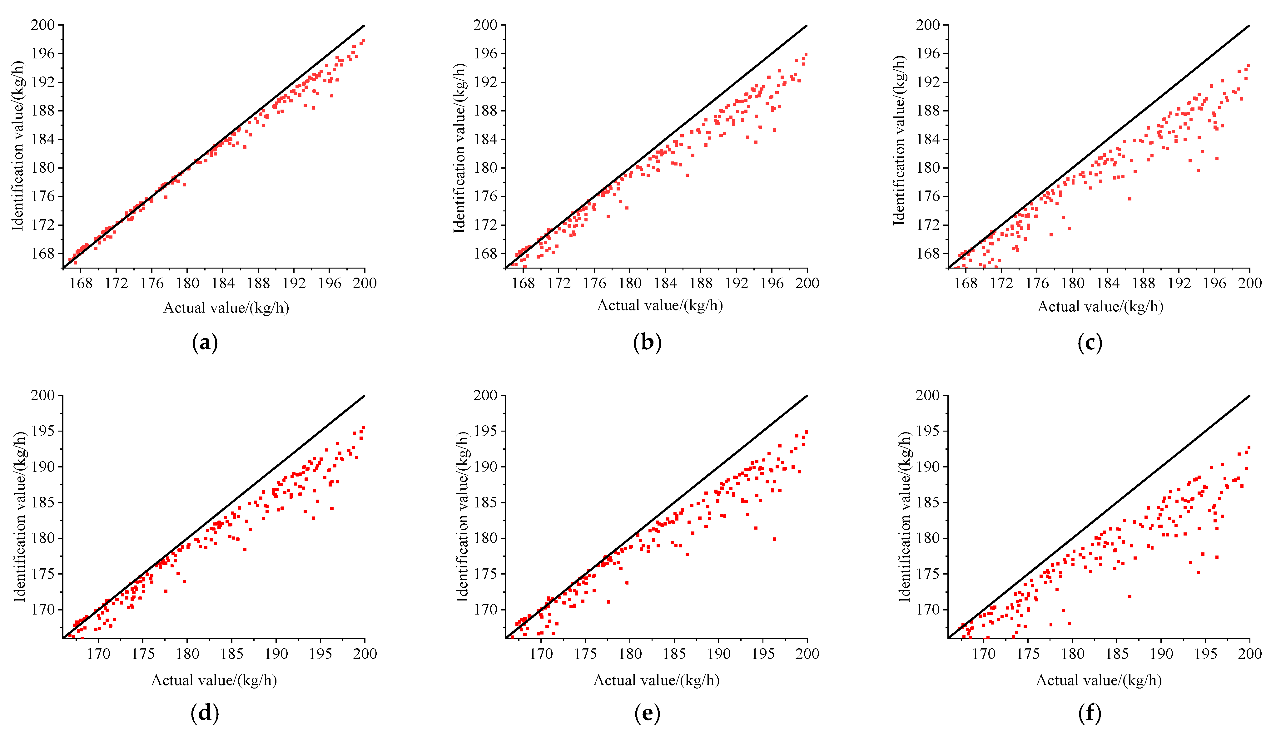 MSE, RMSE, and MAE are used to measure the deviation degree between the identification value and the actual value. The smaller the value, the smaller the identification error and the higher the accuracy. MAPE represents the identification error as a percentage of the actual value, which can more intuitively reflect the relative error size of the identification result. The R2 reflects the fitness degree of the model, and the closer the R2 is to 1, the closer the identification result is to the actual value.