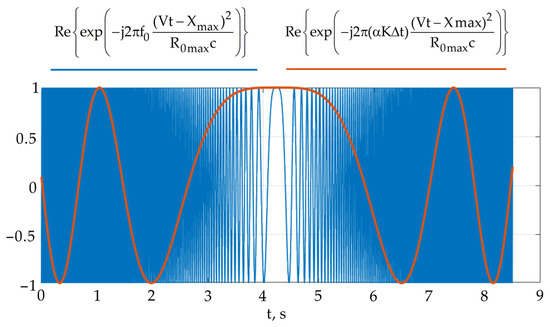 The function is well known from classical high-resolution radar imaging algorithms used in pulse-mode radar operation. It serves as the basis for recovering fine details in the primary image, or in other words, for synthesizing the antenna aperture. Compared with the function is more low-frequency and thus does not allow the recovery of small-scale details in radar images and it may be neglected in future considerations. The smaller the ratio of the frequency deviation of the probing signal to the carrier frequency, the less significant the influence of the multiplier will be.
