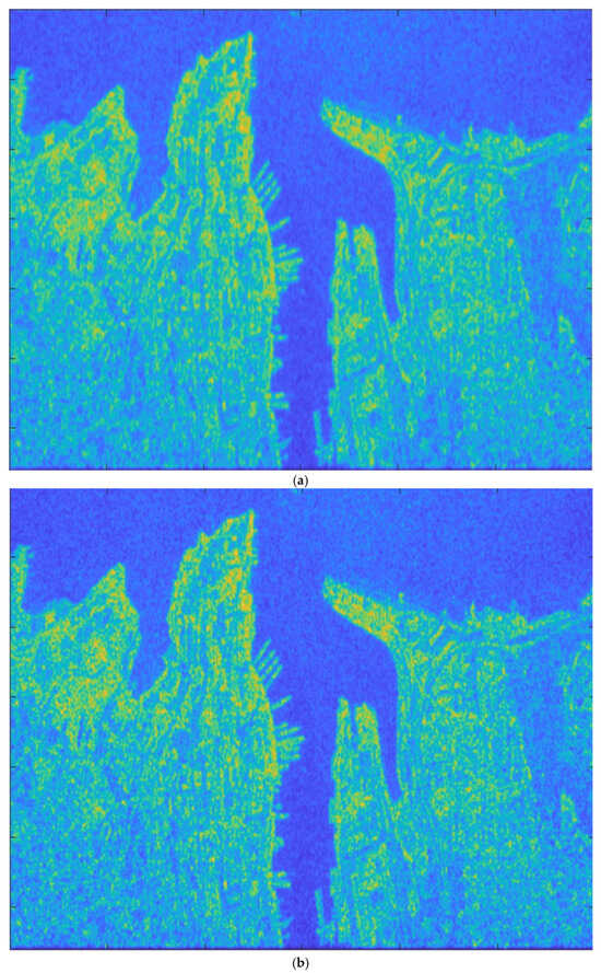 - Chan, D.; Gambini, J.; Frery, A.C. Speckle Noise Reduction in SAR Images Using Information Theory. Int. Arch. Photogramm. Remote Sens. Spat. Inf. Sci. 2020, XLII-3/W12, 141–146. [Google Scholar] [CrossRef]