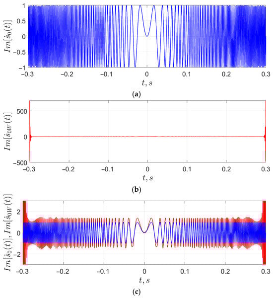 Equation (26) is a Fredholm’s integral equation of the first kind. To solve it, one must move to the spectral domain, determine the spectrum of , and apply the inverse Fourier transform. and the useful signal are nonstationary random processes. This nonstationarity is evidenced by the correlation function (25), which depends not only on the difference but also on the absolute time . In such cases, to determine the spectral density of a nonstationary random process, a double Fourier transform over the variables and is required.