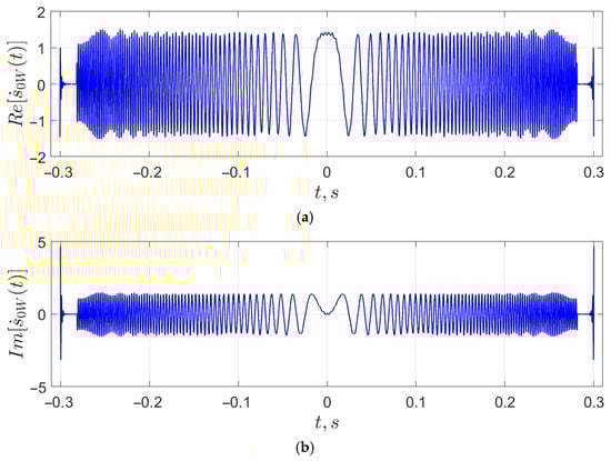 It should be emphasized that in Equation (32), the unit signal in the numerator is the complex conjugate of the radiated signal. This processing is fully consistent with matched filtering as described in the classical theory of optimal parameter estimation [29,30,31]. The novelty lies in the decorrelation operation, which increases the number of uncorrelated samples used in the processing of stochastic signals. To determine in the new optimal algorithm (22), it is necessary to apply the inverse Fourier transform to Equation (32).