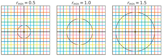 Filter radius rmin representation with a single cell base = height, 0.25 × 0.25 cm.