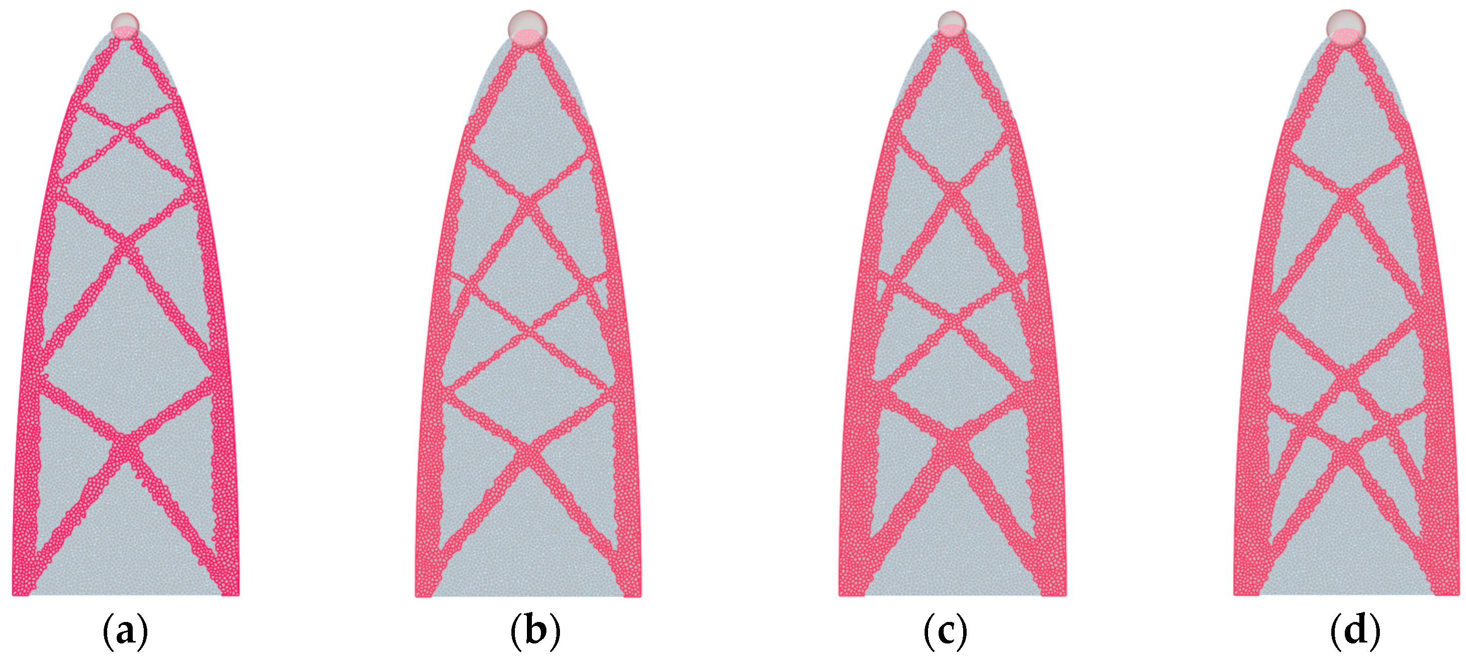 Figure 18b), with the application of multiple sub-regions, the optimised bracing was uniformly distributed, preventing localised stress accumulation.