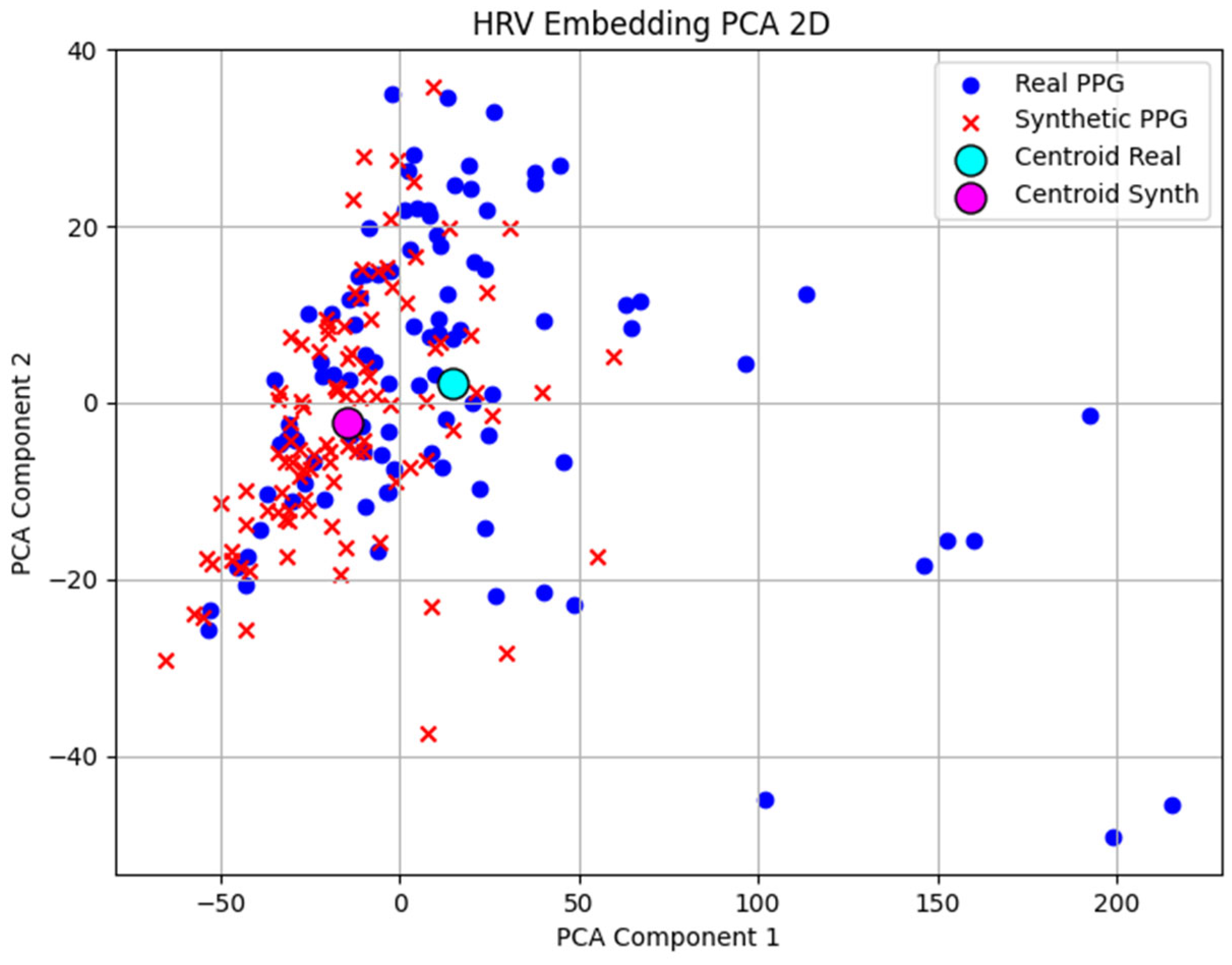 Synthetic data were used only in the training and validation phases to improve model robustness to noise and morphological variability. The final testing subset included only unused real recordings from both BIDMC and Shimmer volunteers, ensuring unbiased evaluation of model generalization.
