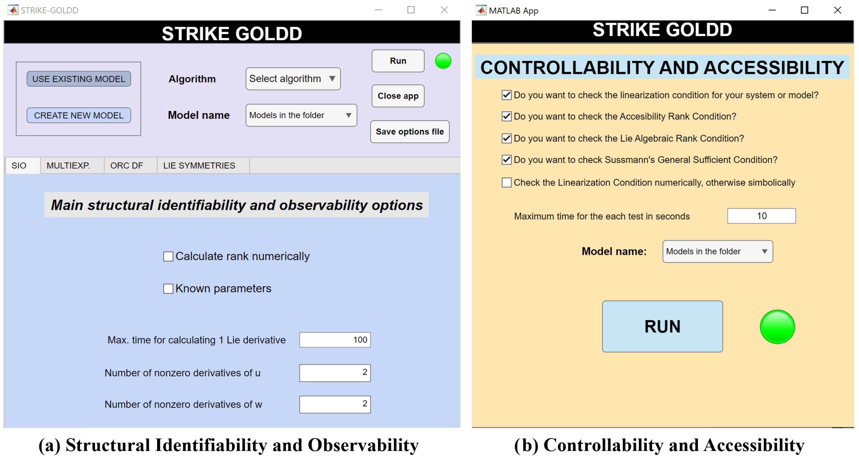 - Díaz-Seoane, S.; Rey Barreiro, X.; Villaverde, A.F. STRIKE-GOLDD 4.0: User-friendly, efficient analysis of structural identifiability and observability. Bioinformatics 2023, 39, btac748. [Google Scholar] [CrossRef]