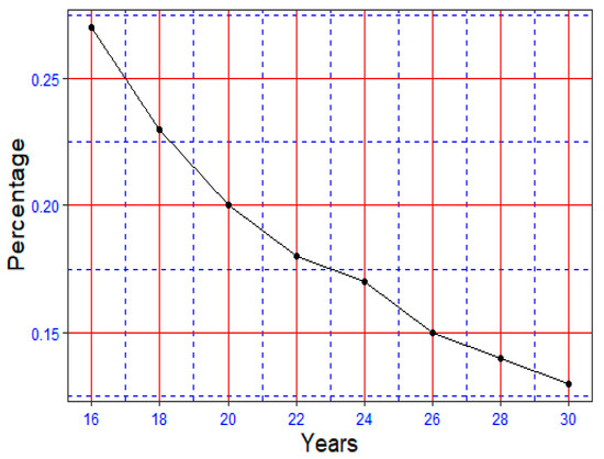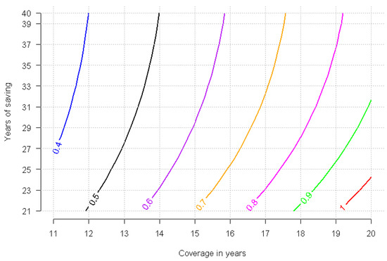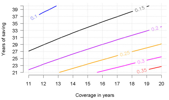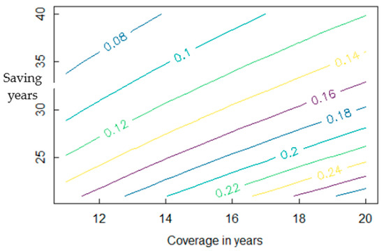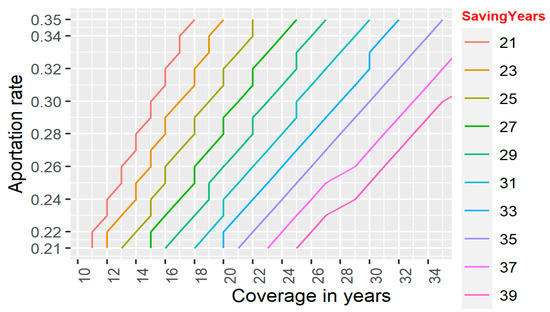 Subsequently, the behavior of the contribution rate was analyzed to assess if a person wanted to live for 10 years of coverage, with the range of saving duration varying from 16 to 30 years (see Figure 3).