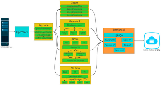 - Zhao, L.; Hu, G.; Xu, Y. Educational Resource Private Cloud Platform Based on OpenStack. Computers 2024, 13, 241. [Google Scholar] [CrossRef]