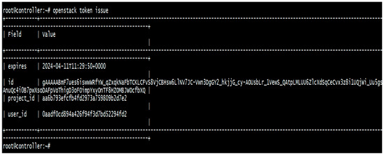 OpenStack, as a highly modular cloud computing management platform, offers flexible resource management and scheduling mechanisms. However, this flexibility also poses challenges in user and role management, particularly in ensuring information security authentication in a multi-tenant environment [28]. Addressing this issue, we initially utilized the OpenStack-client tool to create users and roles in Keystone, and then established an admin project to uniformly manage users and roles for other components. To guarantee security authentication, we adopted internet encryption technologies. The implementation of Keystone is illustrated in Figure 4.