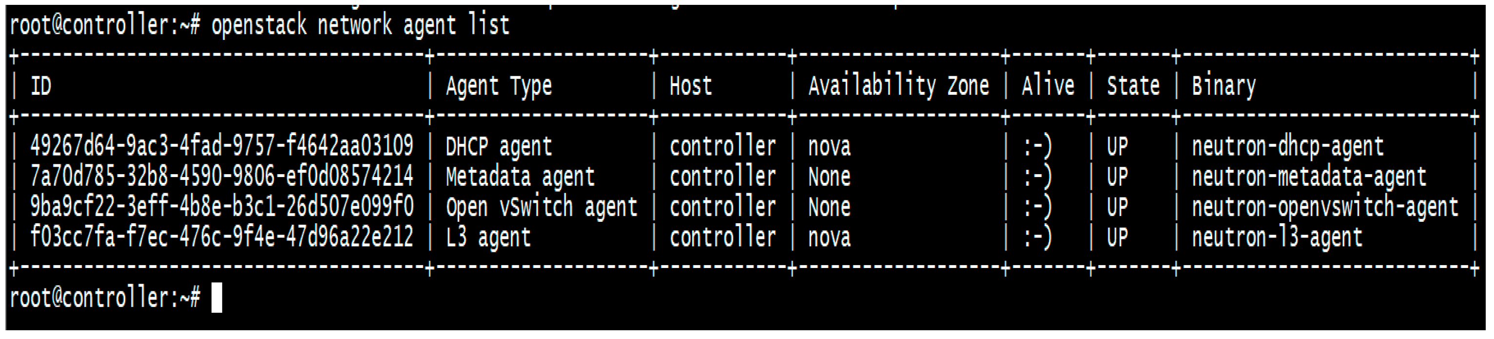 The Neutron in the OpenStack cloud platform faces the following challenges in the creation, configuration, and management of network resources. First of all, the configuration of Neutron is relatively complex and requires the correct setting of multiple configuration files and parameters. Secondly, the deployment and configuration of Neutron are limited by the compatibility of the underlying hardware and operating system, which may require different configurations and optimizations. Therefore, when using Neutron to create network resources, configure, and manage them, it is necessary for Neutron to support the dynamic configuration and update of network resources to adapt to the constantly changing business needs [30]. Moreover, Neutron also needs to support real-time monitoring and troubleshooting of network resources to ensure the stability and availability of the network. The Neutron implementation is shown in Figure 8.