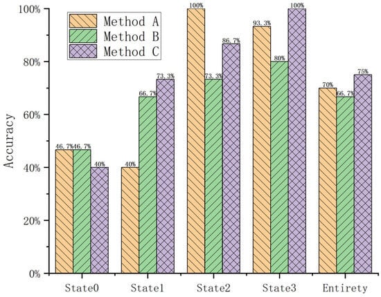Bar chart of the accuracy of various circuit breaker status identification methods.