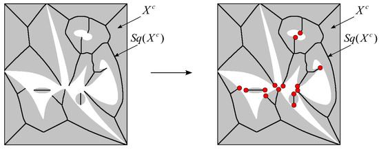 - Khoury, M.; Shewchuk, J.R. Restricted Constrained Delaunay Triangulations. In Proceedings of the 37th International Symposium on Computational Geometry (SoCG 2021), Buffalo, NY, USA, 7–11 June 2021; Buchin, K., Colin de Verdière, E., Eds.; Dagstuhl: Wadern, Germany, 2021. Leibniz International Proceedings in Informatics (LIPIcs). Volume 189, pp. 49:1–49:16. [Google Scholar] [CrossRef]