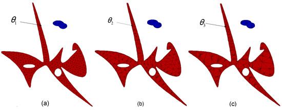 - Khan, D.; Yan, D.M.; Wang, Y.; Hu, K.; Ye, J.; Zhang, X. High-quality 2D mesh generation without obtuse and small angles. Comput. Math. Appl. 2018, 75, 582–595. [Google Scholar] [CrossRef]