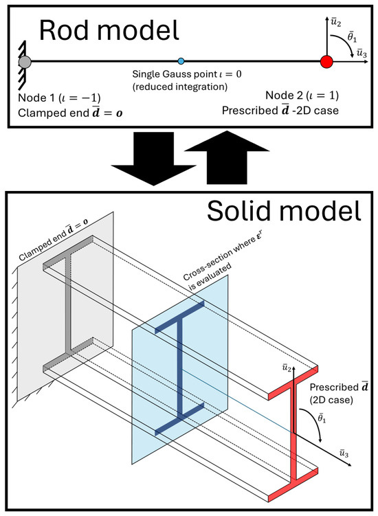 - Kassab, M.P.; Campello, E.M.B.; Ibrahimbegovic, A. A kinematically-exact reduced-order rod model for elastoplastic failure in thin-walled members. In Proceedings of the 16th World Congress on Computational Mechanics and 4th Pan American Congress on Computational Mechanics, Vancouver, BC, USA, 21–26 July 2024. [Google Scholar] [CrossRef]