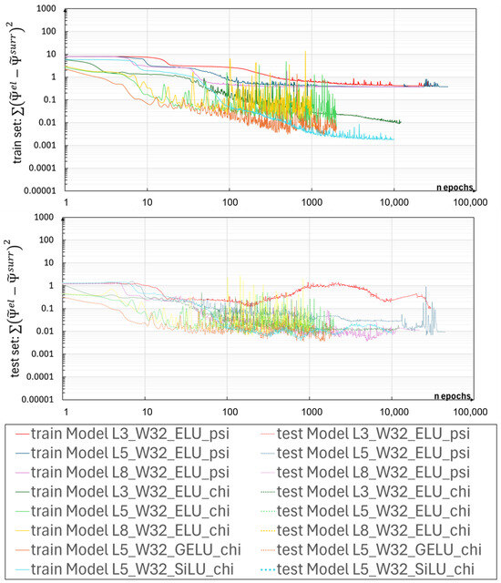 Appendix B. DNN Results for Training and Testing Sets Using Model L5_W32_SiLU_chi