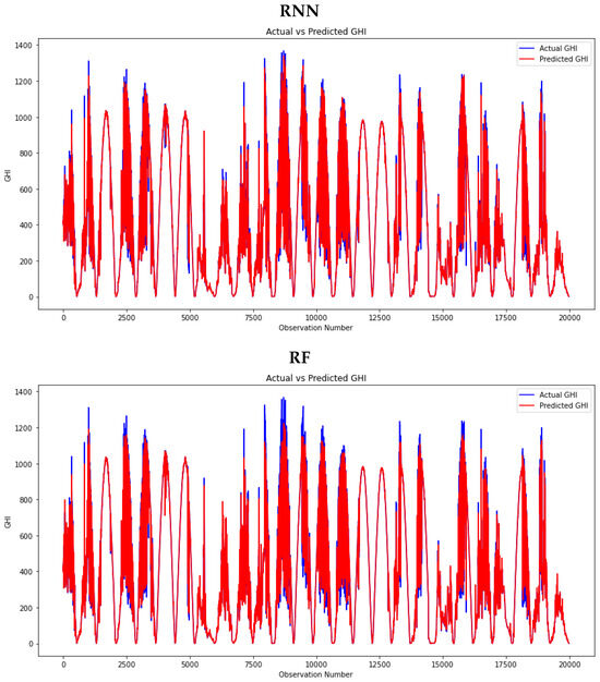 In the previous section, we discussed modelling minute-averaged GHI forecasting using RNN, SVR, RF, GB, and two Stacking Ensemble methods. We also discussed the importance of variable selection and how we implemented RF, excluding three variables (wind speed, maximum wind speed, and wvec mag) from the GHI forecasting models.