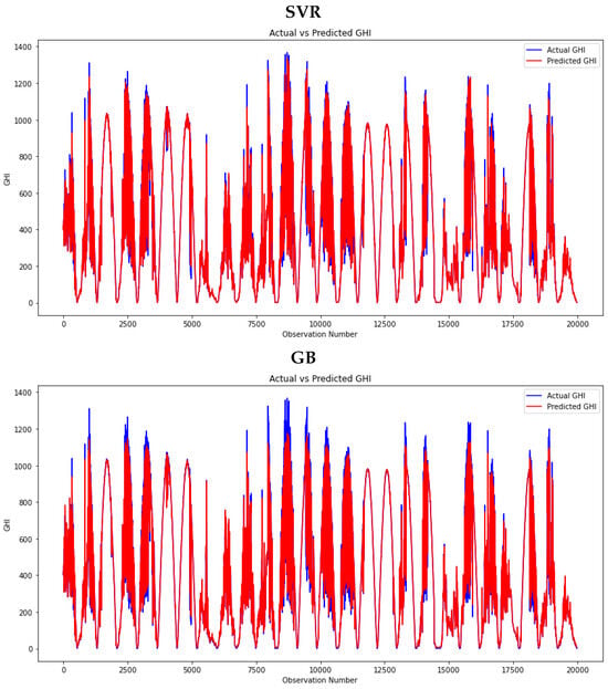 S. Gbémou [3] conducted one such study, which compared machine learning models with a scaled persistence model in forecasting GHI. The study analysed the performance of artificial neural networks (ANNs), Gaussian process regression (GPR), SVR, and Long Short-Term Memory (LSTM) models. Two years’ worth of GHI data were used to train the models. Following the application of the coverage width-based criterion, dynamic mean absolute error (DMAE), and normalised root mean square error (nRMSE), the results showed that the machine learning models performed better than the scaled persistence model, with the SVR, LSTM, and GPR models being the top performers.