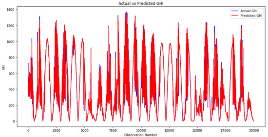 In another recent study conducted in India by K. Naveen [7], researchers investigated solar radiation and focused on forecasting hourly GHI. The historical data used covered all climatic zones from 1995 to 2014. The study’s primary goal was to develop a high-performing model based on Gradient Boosting (GB) that also required less computational time. The GB model was benchmarked against a two-layer feed-forward neural network (FFN) and Auto-Regressive Integrated Moving Average (ARIMA). The results indicated that the GB model outperformed the FFN and displayed better accuracy than the ARIMA model, such as MSE and MAE. The developed model and its architecture are intended to have practical implications.