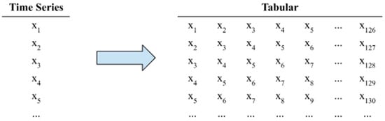 Tree-based methods generally accept data in tabular form, with rows corresponding to individual samples and columns corresponding to features of the data. To accommodate the format, we take “slices” (also called windows) of our data in both the training and test sets, with each slice taking up one row and consisting of 126 consecutive daily returns. This means our features are the daily returns themselves—one for each trading day in a six-month period. There is nothing special about 126 days of trading data, but this period should be long enough to capture autocorrelation in volatility without being so long that older data are irrelevant. Consecutive slices share 124 of 126 data points, as using non-overlapping slices would lead to a sample size of only 62. While the 126 daily returns serve as our features, our target for prediction is the sample standard deviation of returns for the subsequent 21 days, as calculated in Equation (1). Figure 3 provides a visual depiction of the slicing process, which we use on both the training and test sets. We purged exactly 126 data points between our training and test sets because that is the length of one of our data slices. Finally, we note that there is very little collinearity among our features, with the highest correlation between any two columns in the training data being 0.04.