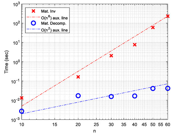 Computational times obtained from matrix inversion and matrix decomposition methods.