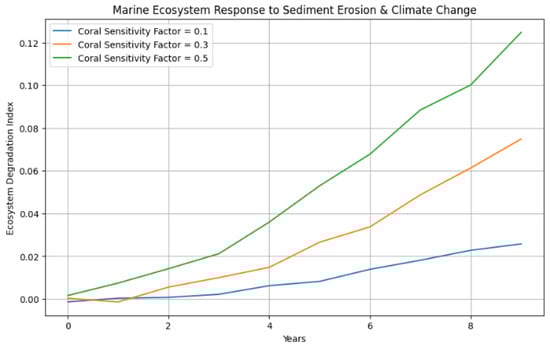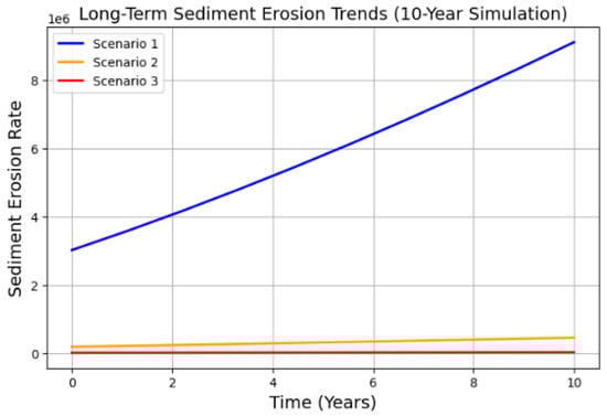 Simulating 10-year sediment erosion trends for different scenarios shows the following.