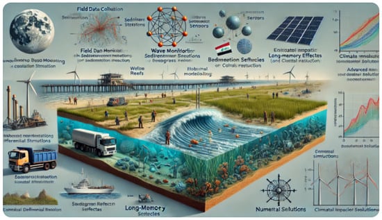 Coastal erosion and sediment transport are critical challenges in managing coastal environments, particularly in regions experiencing intensified climate change effects. Iraq’s coastline along the Arabian Gulf is increasingly vulnerable to rising sea levels, intensified storms, and human-induced modifications (e.g., dredging and port construction) [,]. These factors accelerate sediment loss, threaten coastal infrastructure, and disrupt marine ecosystems [,]. Addressing these challenges requires innovative modeling approaches that accurately capture the complex, dynamic interactions governing sediment transport [].