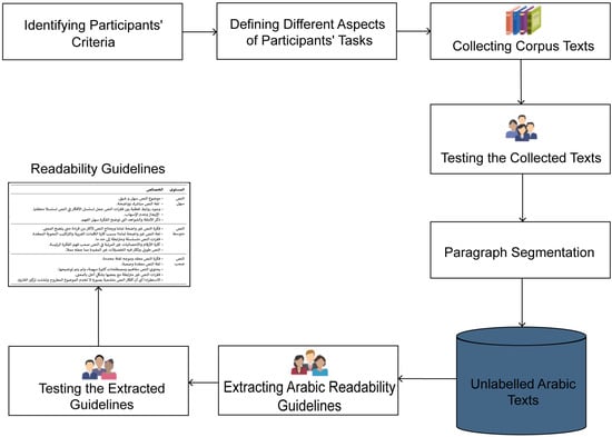 A clear gap in Arabic readability guidelines—particularly for native speakers—was identified through a review of previous studies. Most existing research has focused on specific grade levels or second-language learners [,], whereas this study aimed to develop general guidelines for Arabic books based on how texts are perceived by everyday readers. Rather than relying solely on expert opinions, a user-centered approach was adopted to assess readability from the reader’s perspective.