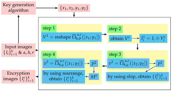 In this subsection, an encryption algorithm for multiple images is presented using the concepts introduced in the previous sections. Before presenting the encryption algorithm, the following notation is introduced. Let