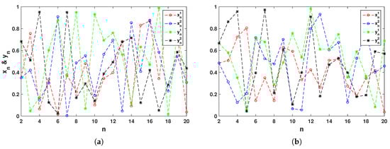 where parameter , is chosen as and for are selected as Sin or Logistic maps. for are constant numbers in , and are considered as sufficiently smooth functions. By taking , where , , and using the method described in [17], the discrete solution of this system can be found as follows. In the first step, let , then for , we obtain