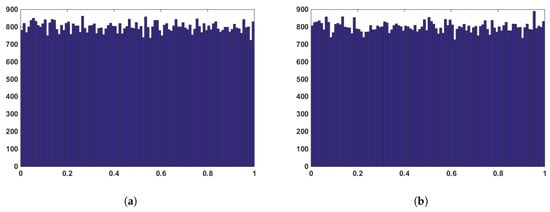 The ideal value of information entropy is 8. The numerical results for this test are presented in Table 7 and Table 9. Also, the numerical results for the average value of information entropy of the encrypted sequence images have been compared with the results of other papers in Table 10 for . These results show that the value obtained from the proposed method is close to the ideal value.