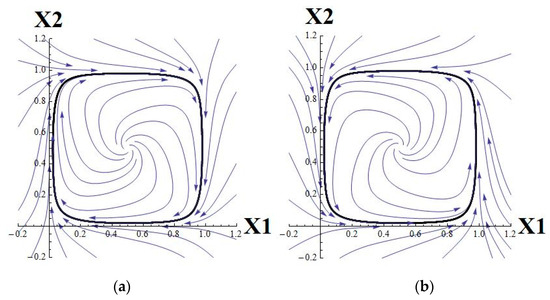 The third group of problems concerns biomedicine-oriented applications of systems of the form (2). In [22,23], system (2) was considered as a model suitable for considering and finding ways of treating leukemia (a kind of blood cancer). In a model, the problem is interpreted as going the system state trajectories to a “wrong” attractor. The ways of redirecting trajectories to a “normal” attractor were discussed in [24,25].